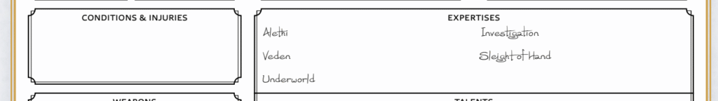 Você já ganha 2 expertises ao escolher a cultura do seu personagem. Porém, se seu Intelecto for 1 ou mais, você pode adicionar expertises de acordo com esse nível.